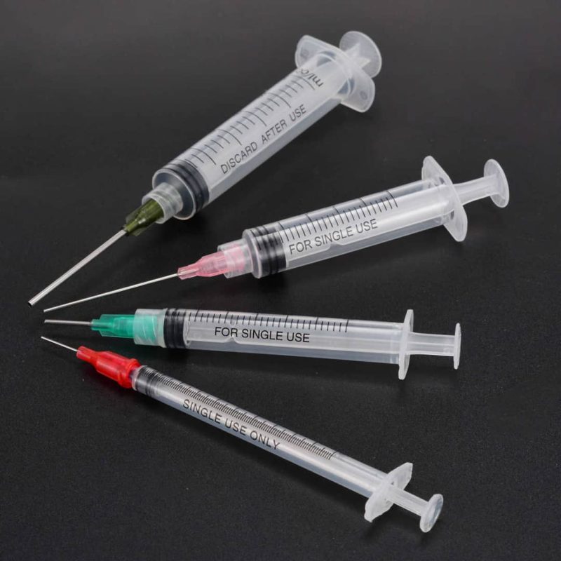 Syringes are labeled based on the amount of liquid they can hold and are divided into small, medium, and large sizes.